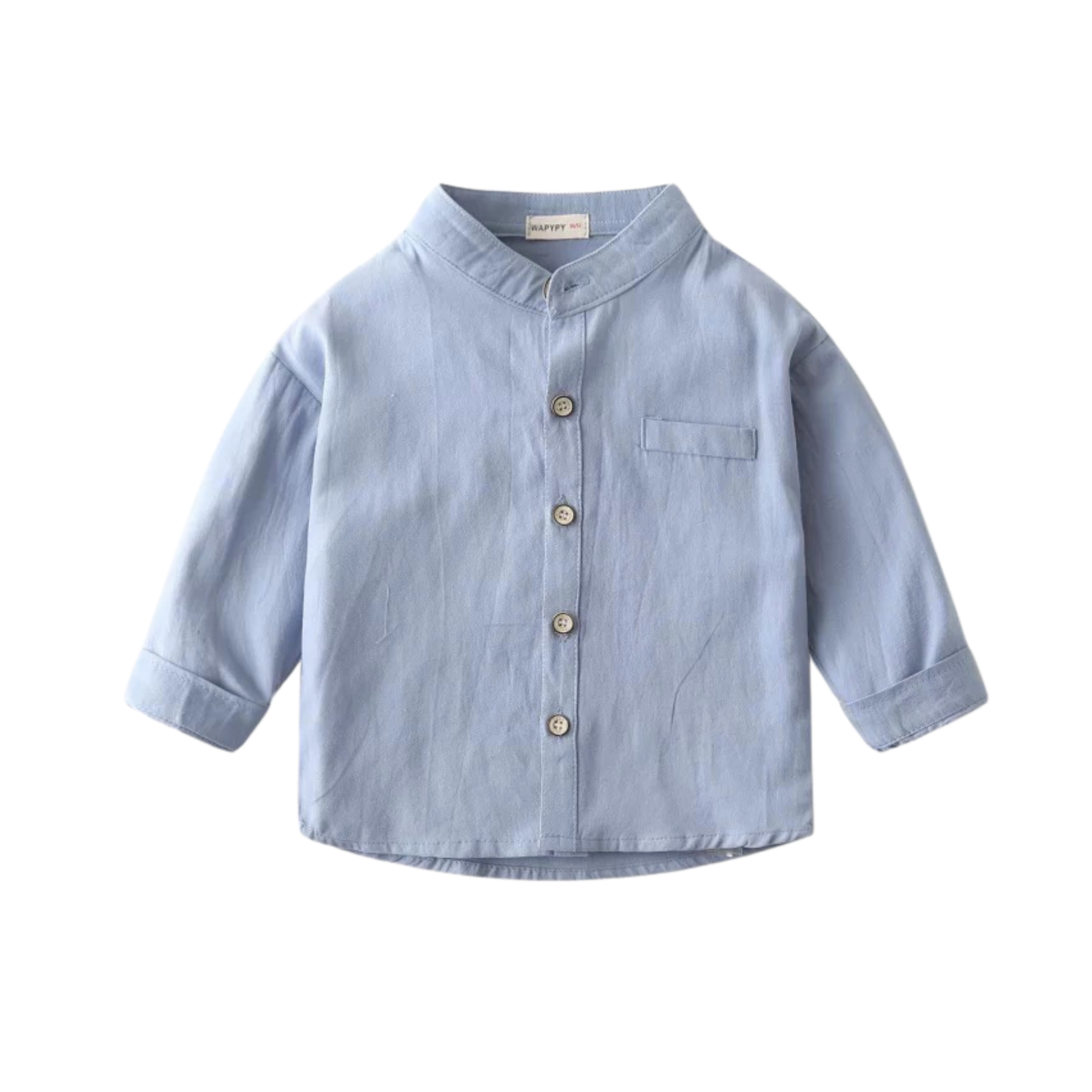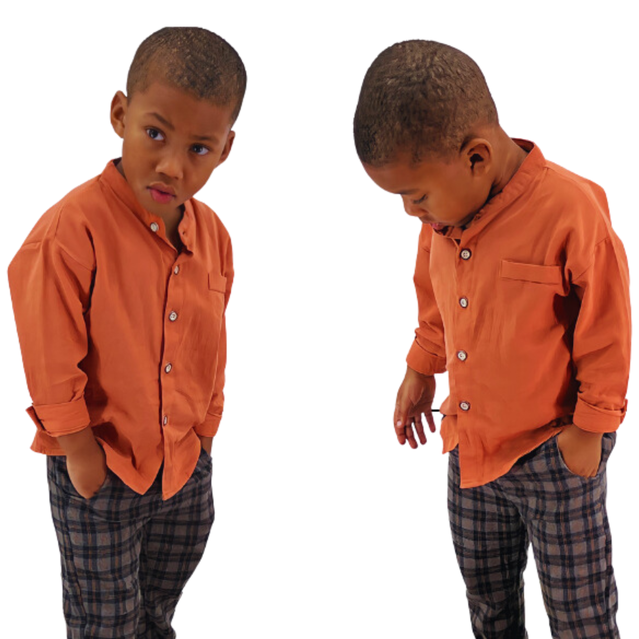 The Everyday Gent Shirt is our elevated take on a boys’ staple — featuring a modern mandarin collar, structured cuffs, and a clean silhouette that plays well with both trousers and joggers.